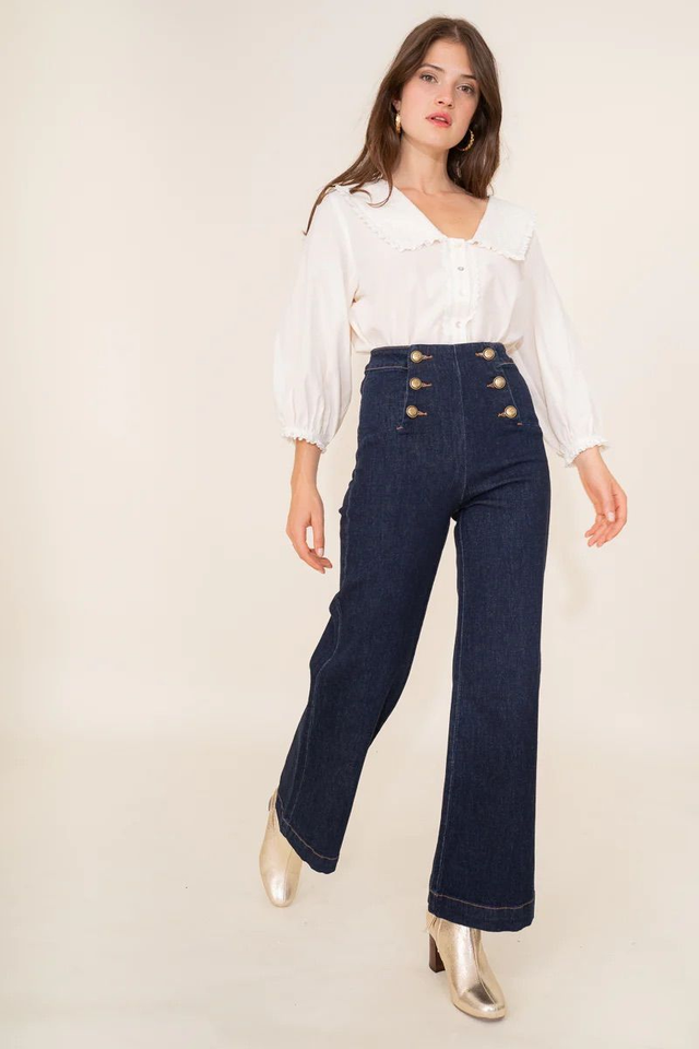 Jeans wide leg bottoni oro